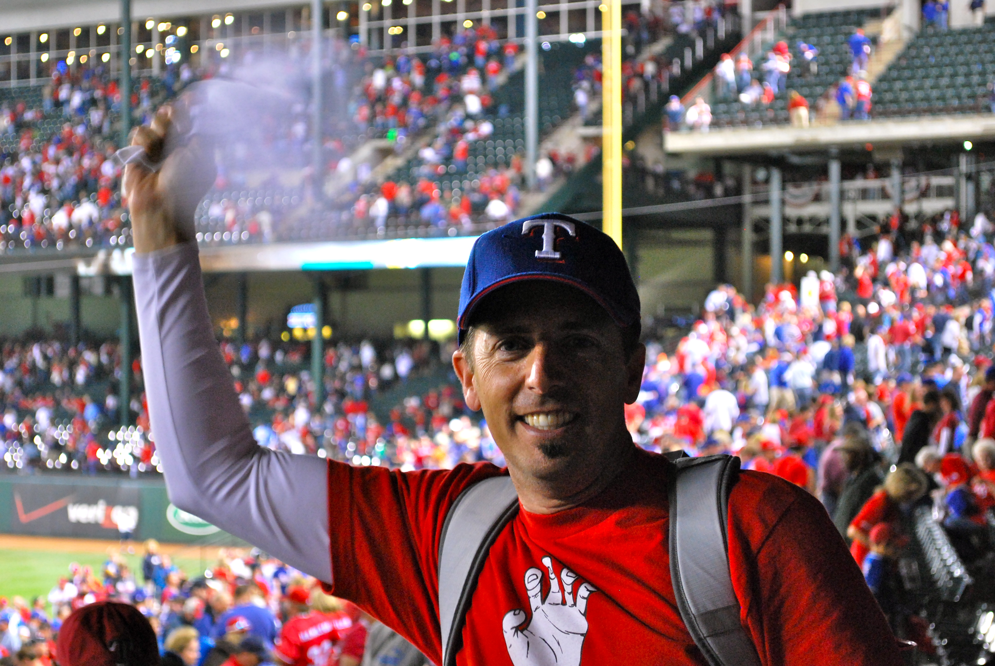 Waving my Rally towel. Waiting for the Rangers to drop the Claw and Antlers on SF.