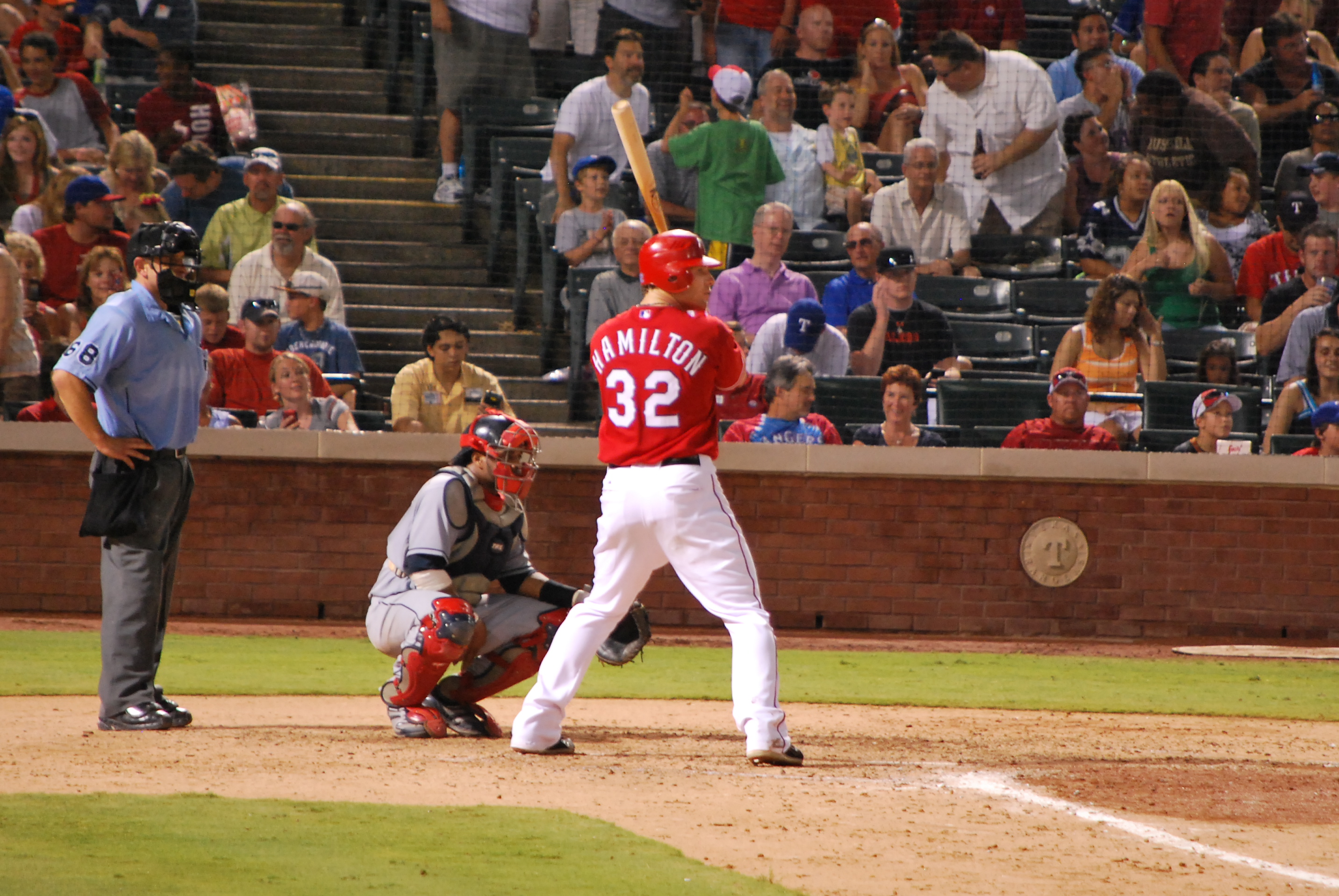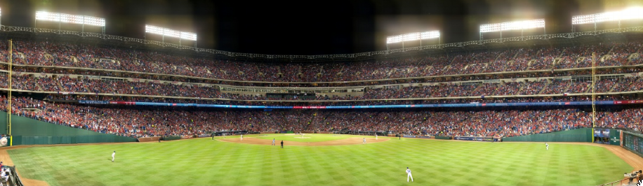 Crazy night at the Ballpark in Arlington…we’ll never forget this one (a fan fell out of the upper deck landing on the people below. After a long delay, on the next at bat, fans began a brawl over a foul ball).
